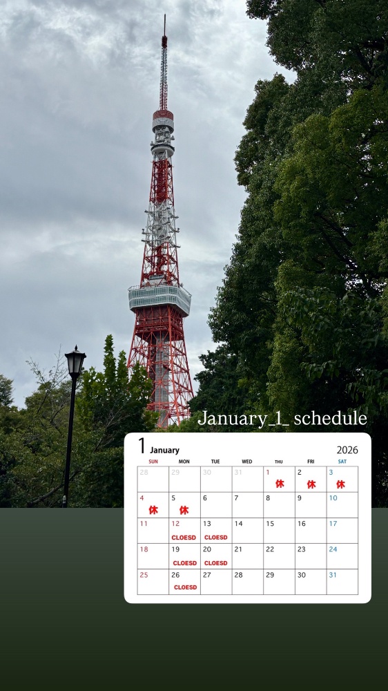 Instagramに色々なスタイル・毎月の定休日・